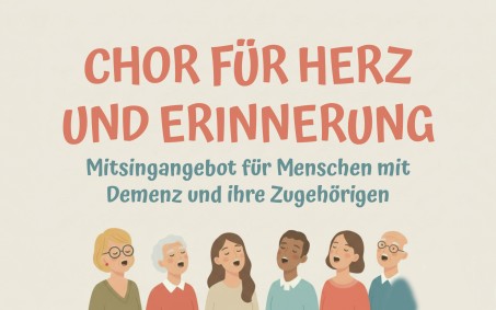 Einmal im Monat findet ein Mitsingangebot für Menschen mit Demenz und ihren Zugehörigen statt - in ruhiger Atmosphäre, voller Lebensfreude und schöner Erinnerung. Eine Anmeldung ist erforderlich. Hier geht es direkt zu den nächsten Terminen.